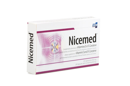 MEDIBASE-Nicemed Caratteristiche Nicemed è un complemento alimentare di Vitamina E e beta-Carotene con Amido di riso fermentato ed estratti secc...