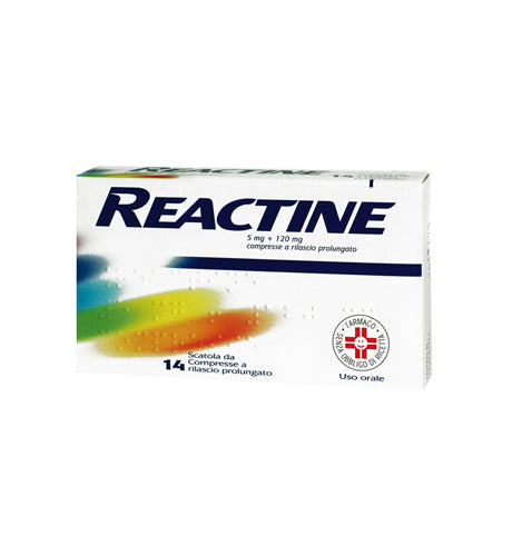 Reactine 5mg+120mg 6 Compresse A Rilascio Prolungato Principi attivi Cetirizina dicloridrato,Pseudoefedrina cloridrato. Eccipienti Primo strato: Ip...